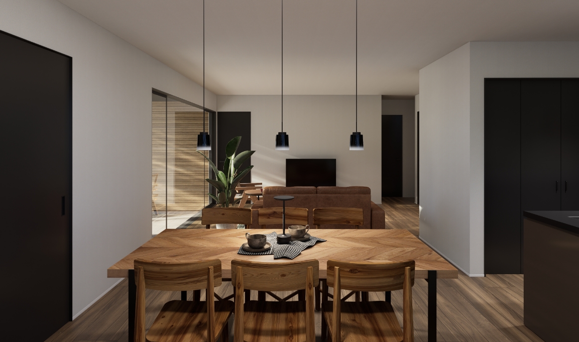 LDKを中心にした平屋の間取りは、家族の絆を深める、温かく快適な暮らしを実現します。