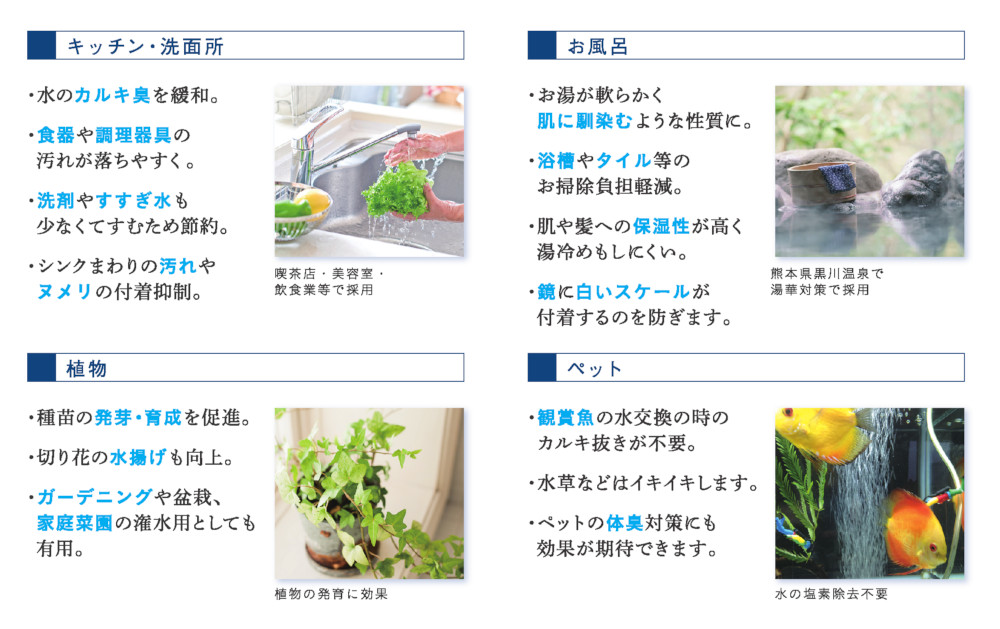 簡単に言えば、浄水器よりも一歩進んだ、水を”高機能水”に変える給水器具のことです。