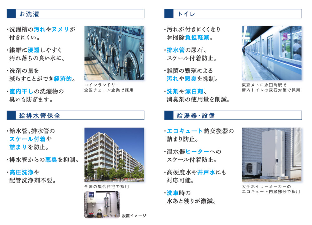 ・洗濯槽やトイレ、ウォシュレットなど設備自体に汚れがつきにくくなる