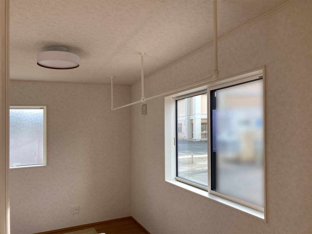 将来2部屋に仕切れるように入口は2か所設けています。 窓も二つあるので採光や通風も考慮されています。