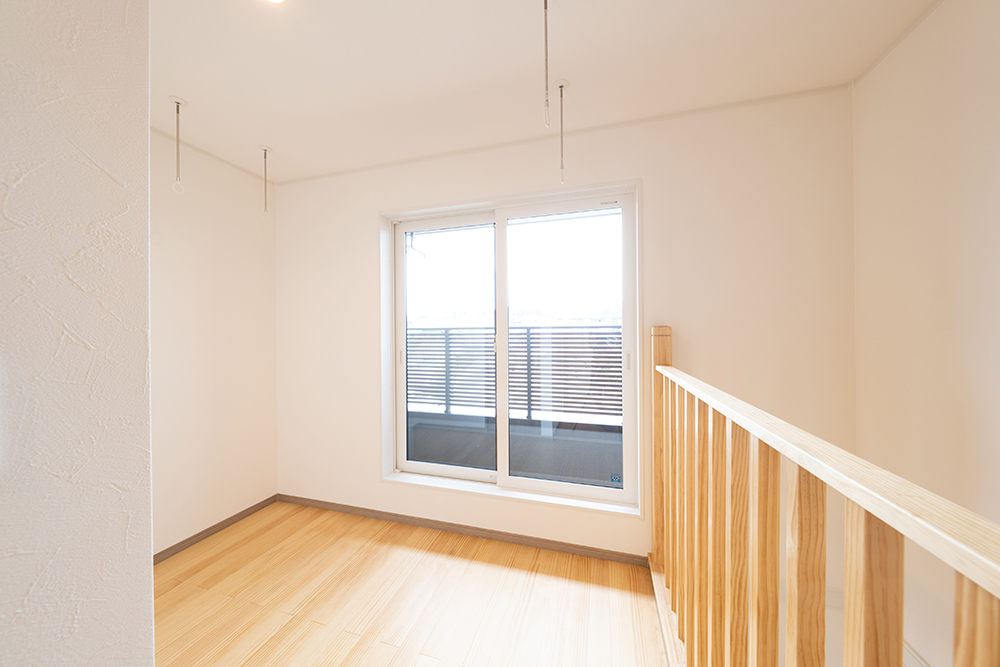 2階は、主寝室8.5帖+3帖のウォークインクローゼット、6帖洋室2部屋、2帖の納戸、トイレ、3帖のファミリーホールに加え、階段、廊下、バルコニーを設けております。