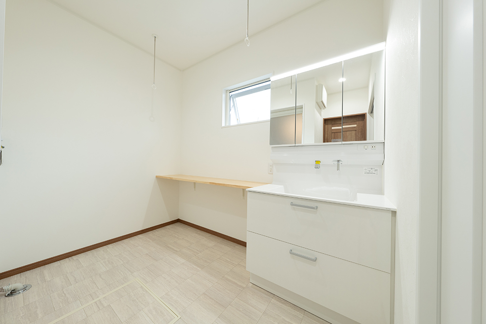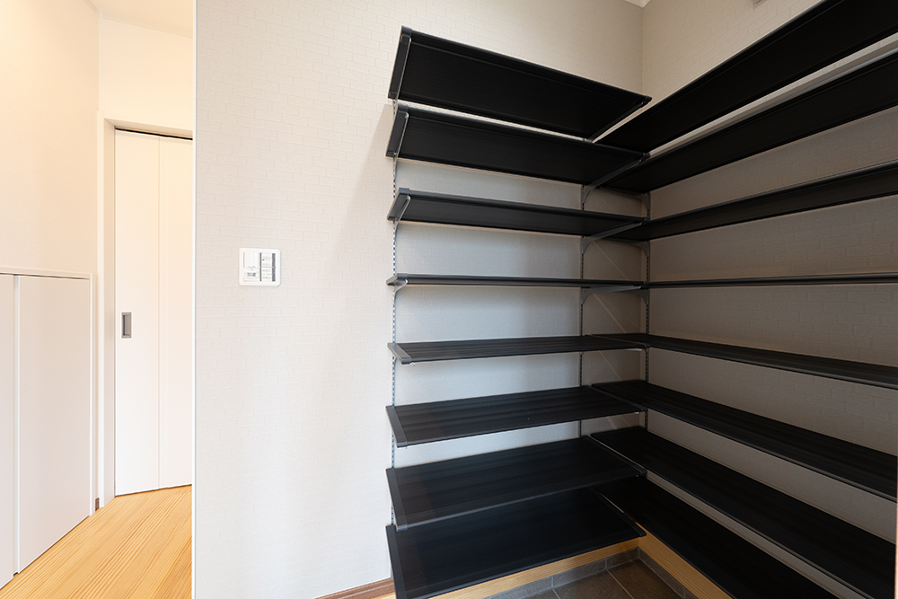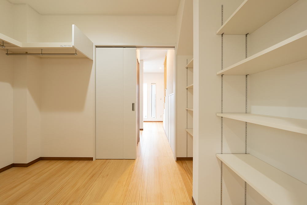 「規格住宅で理想の間取りができるか心配」とのご相談を受け、1階にはシューズクロークやファミリークローゼット、ランドリールーム、パントリーがつくれるかを検討。
